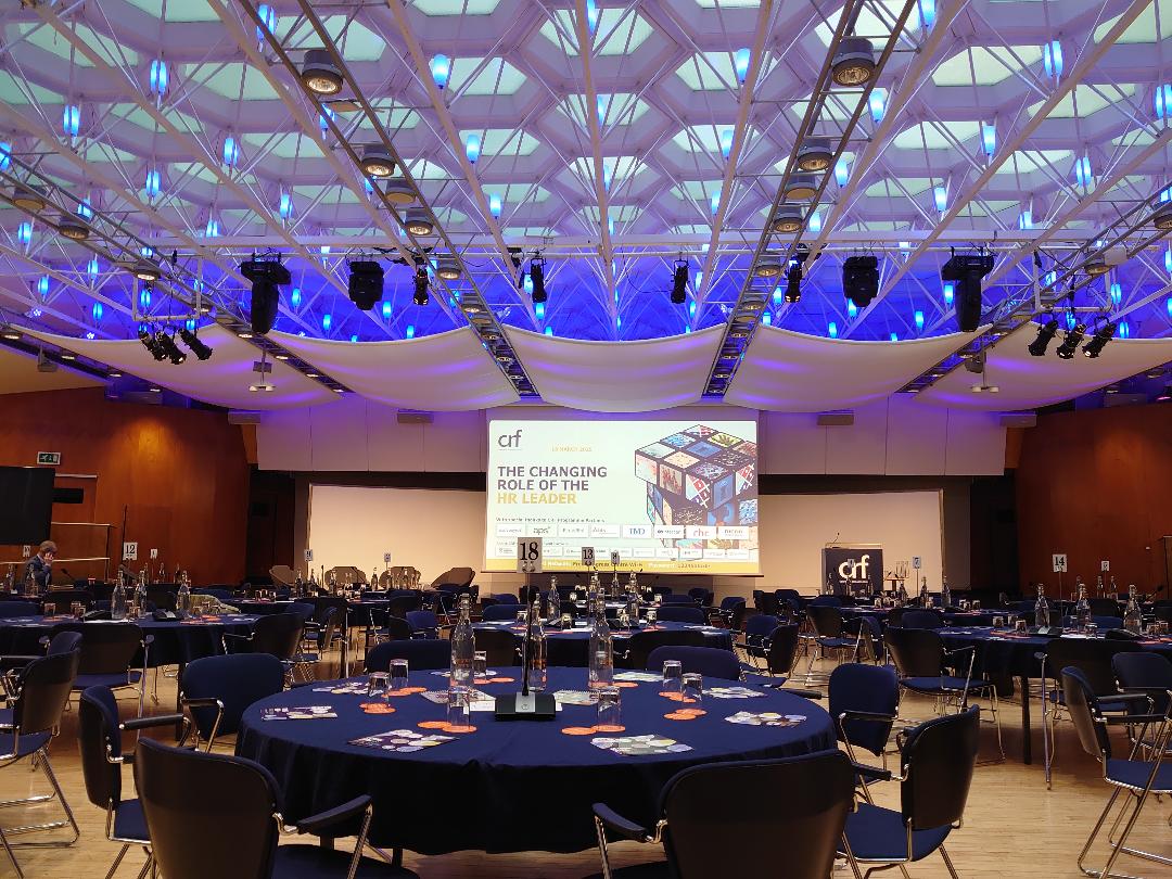 A rare insight into my working life. I attended an excellent conference in London, entitled The Changing Role of the HR Leader, and organised by the good folk of the Corporate Research Forum. I arrived very early, hence the all-but-empty room. Rest assured that soon after this the place was absolutely packed.