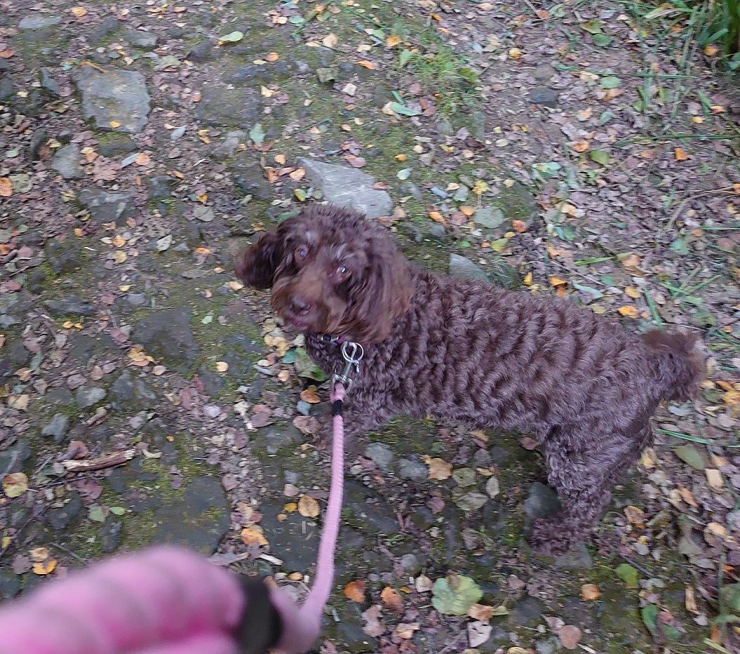 I got to dogsit for the lovely Meg today. She was as good as gold while scaffolders did their noisy thing on my house. And later that day, she was so good as to allow me to accompany her on an autumnal walk in the park. Thank you, Meg!