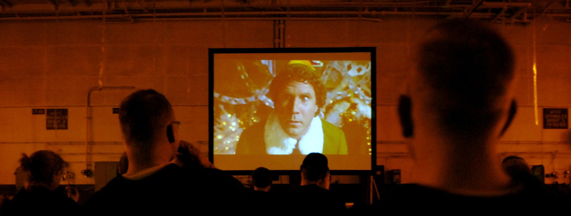 - US Navy 061217-N-0336C-052 Sailors relax while watching the Christmas movie via Wikimedia Commons.