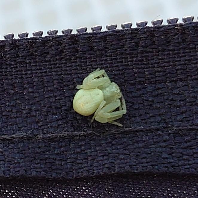 Spotted in my garden just now – a tiny wee green spider, which a quick Google suggested could well have been a cucumber spider. However, when I shared this pic via Threads I received a number of helpful responses telling me that it was more than likely some form of crab spider.