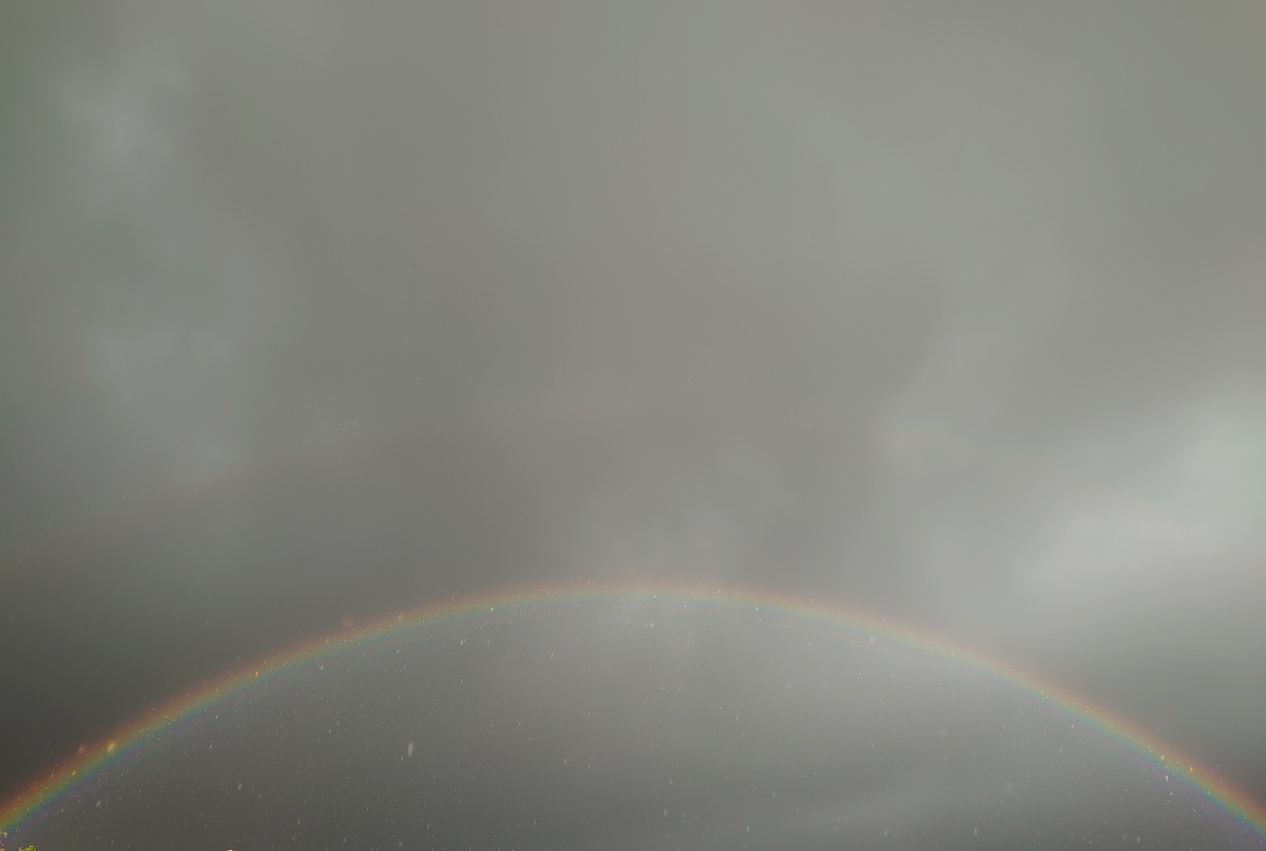 I stepped out of my door on this particular wet and windy Monday afternoon, and immediately saw the biggest, boldest and clearest rainbow that I have ever beheld. This photograph sadly only hints at how spectacular this was to witness in real life. I think it was something else I’d never previously encountered: a triple rainbow. You can see the faint outline of one ‘additional’ rainbow above the main one in the picture above. But there was also a third one just a little above the horizon level (which refused to show up on virtual film). This was such a privilege to see!