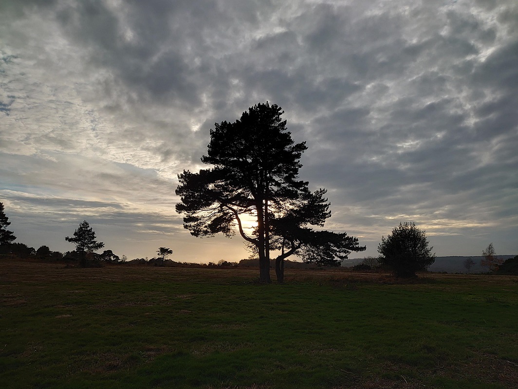 Tree silhouetted by setting sun, a la Ashdown Forest.
