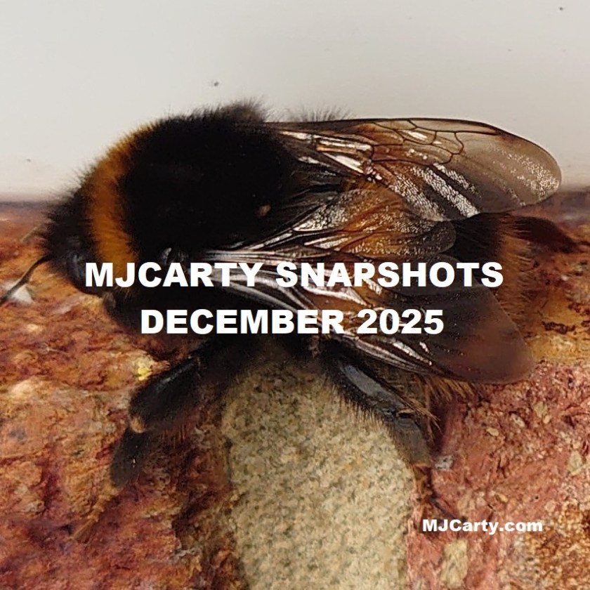 A highly unusual but very welcome sight from a wee bit earlier today: a bee out and about in the December sun. I very much hope that this bee was able to find warm shelter when the weather suddenly remembered it was meant to be deepest winter, right before Xmas.