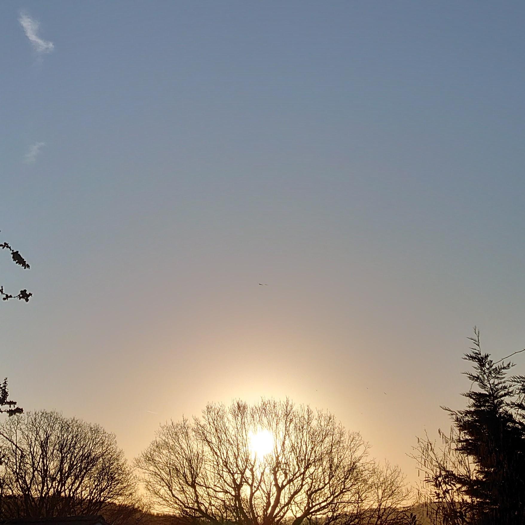 A sign that spring might be just around the corner – the sun doing its level best to burn through the clouds over the Ashdown Forest. A few moments later it succeeded, and my wife and I were able to see our shadows appear in the bright – if ultimately momentary – sunshine.