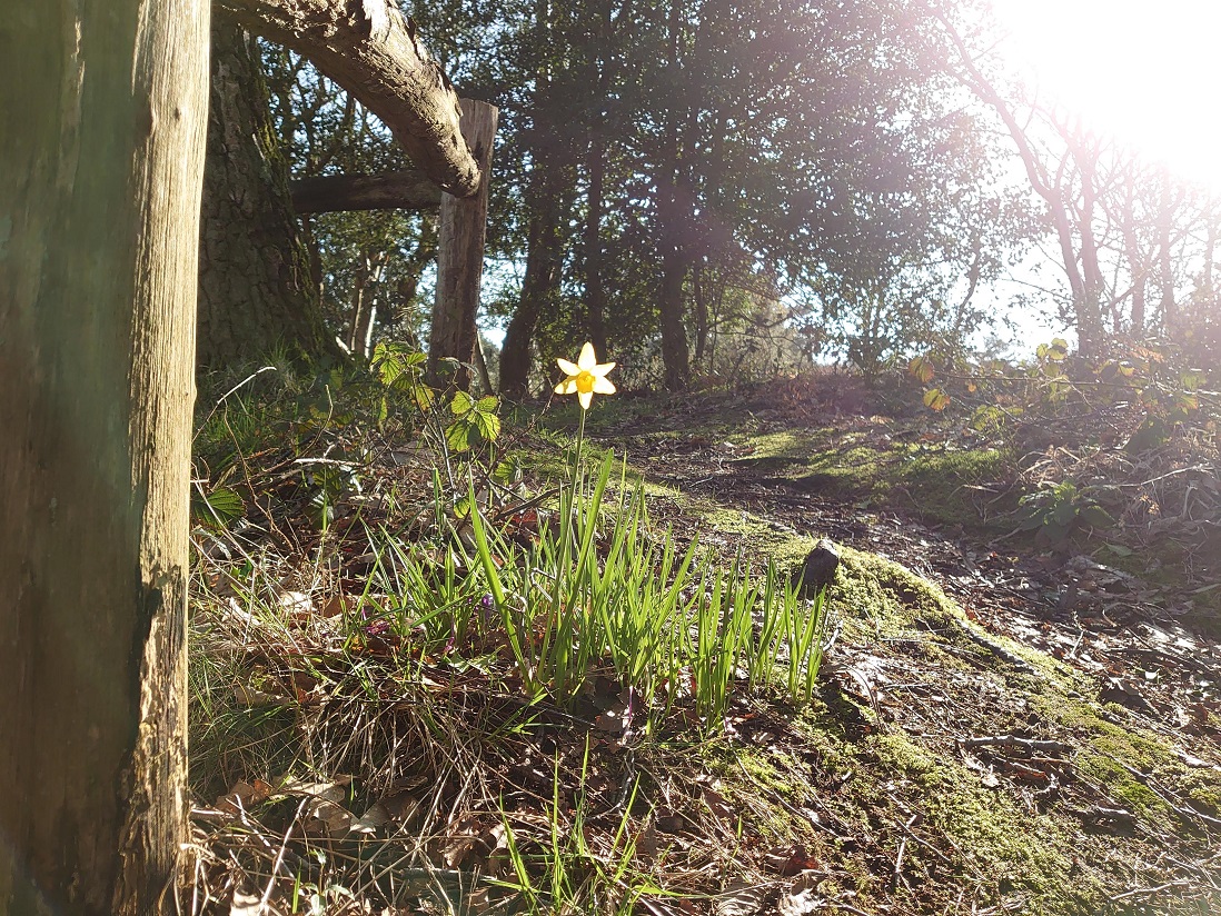 The first daffodil that I had the privilege to see this year, radiant in the warming sunshine. As witnessed on a birthday walk on the Ashdown Forest.